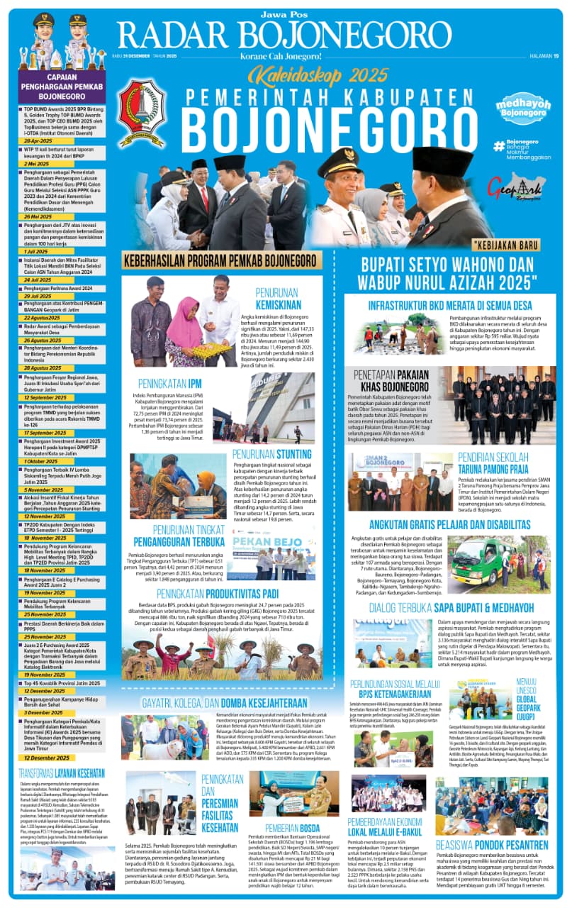 Menjelang berakhirnya tahun, Kabupaten Bojonegoro menutup perjalanan pembangunan dengan berbagai capaian yang mencerminkan kerja nyata dan komitmen berkelanjutan. Sepanjang tahun ini, Pemerintah...